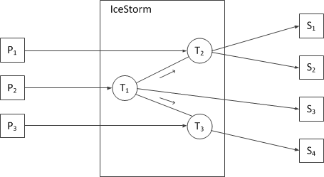 An application indicates its interest in receiving messages by subscribing to a topic. An IceStorm server supports any number of topics, which are created dynamically and distinguished by unique names. Each topic can have multiple publishers and subscribers.